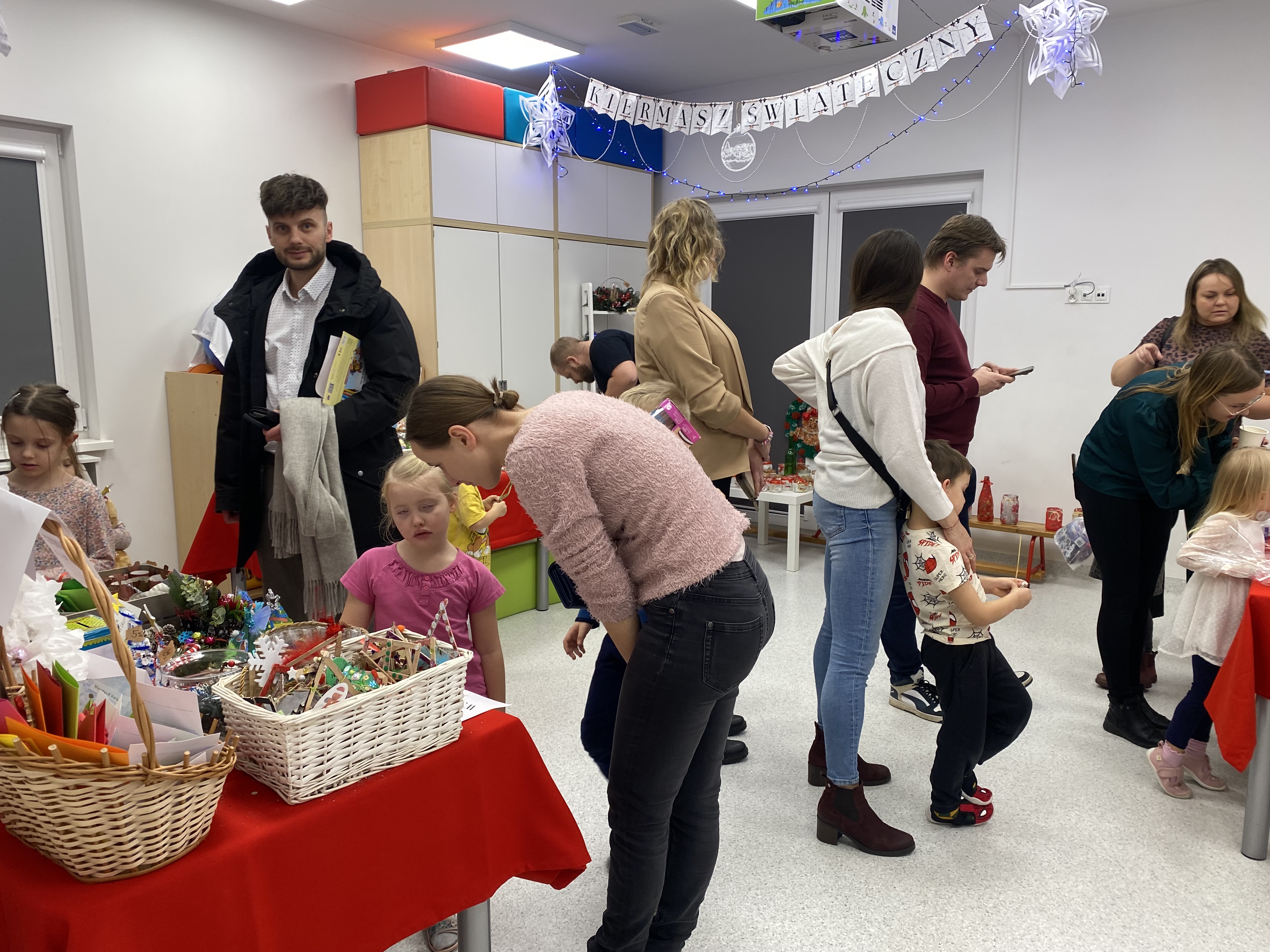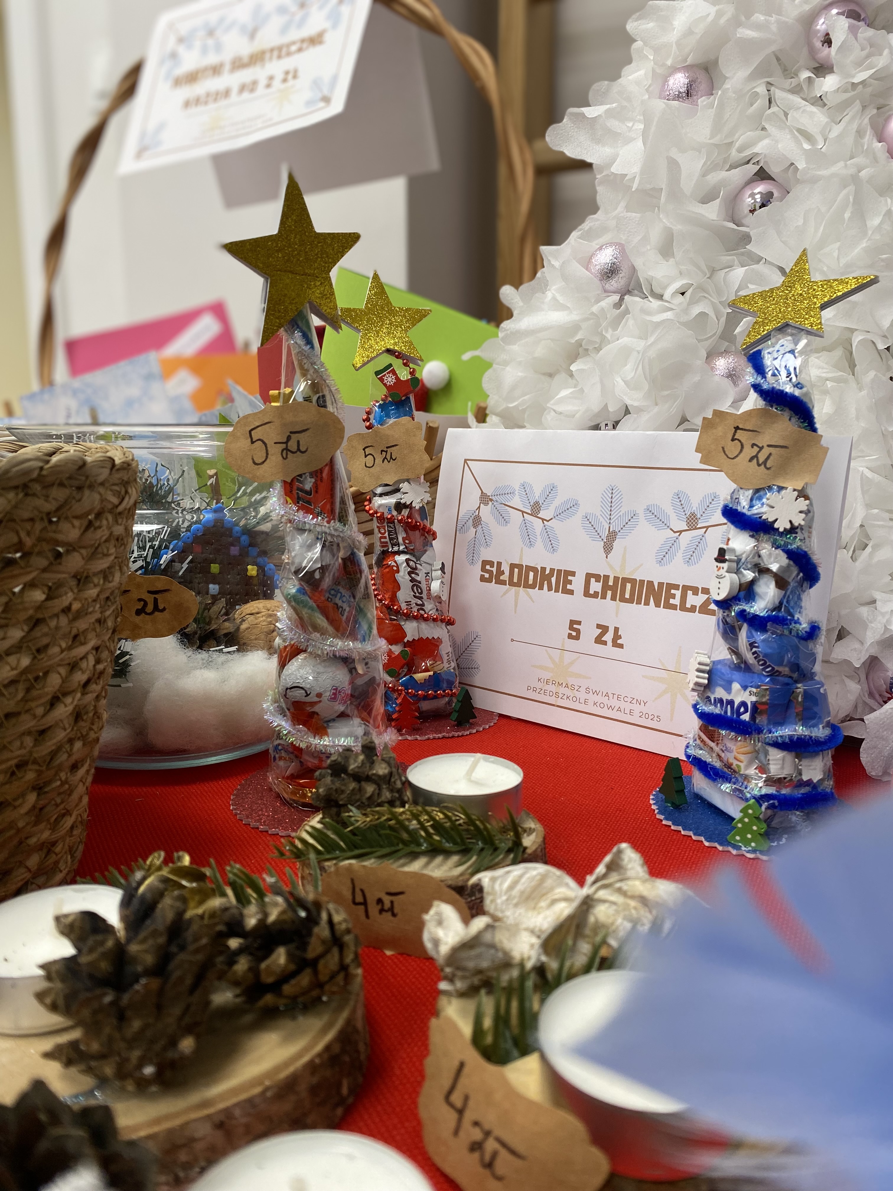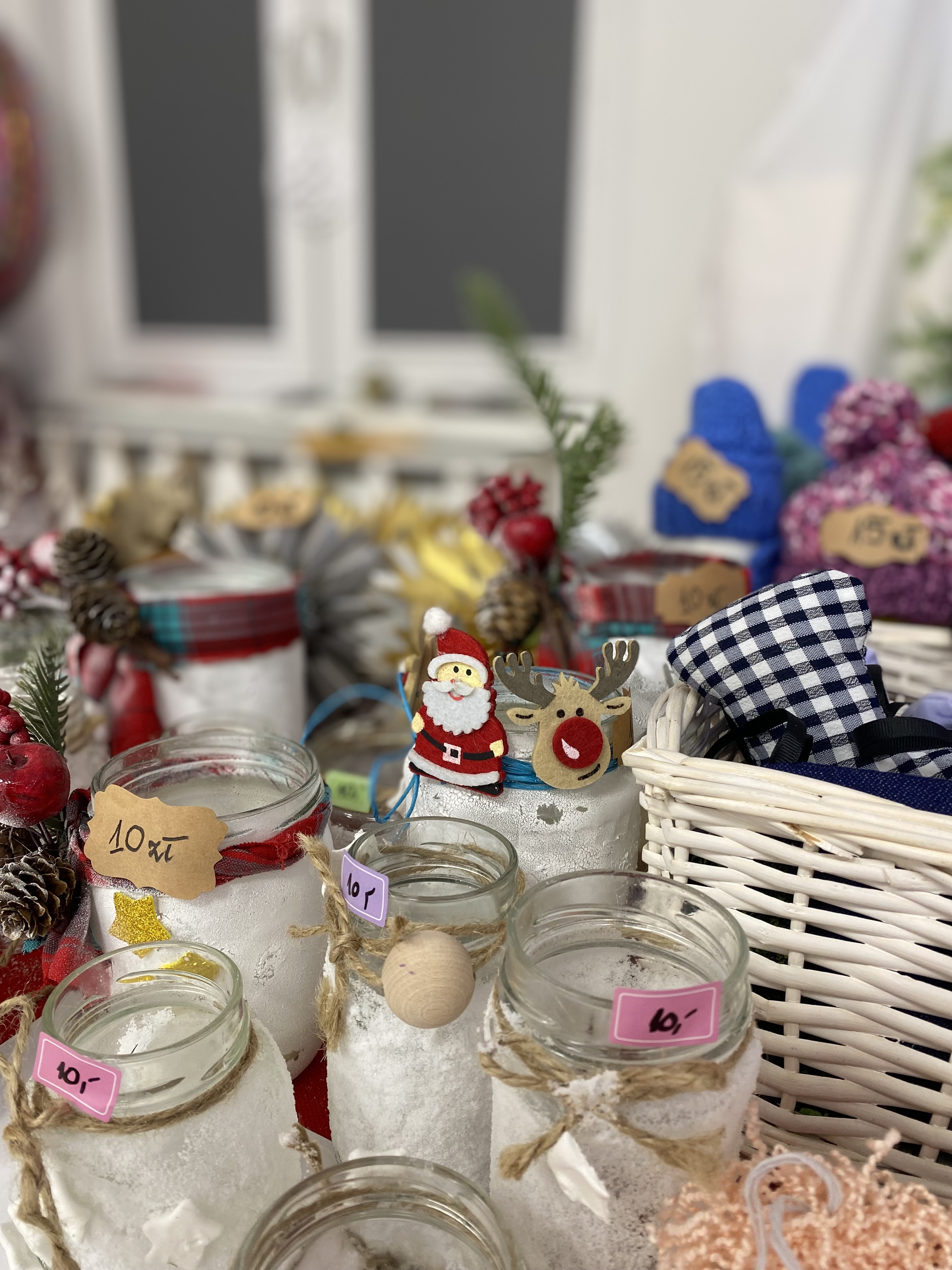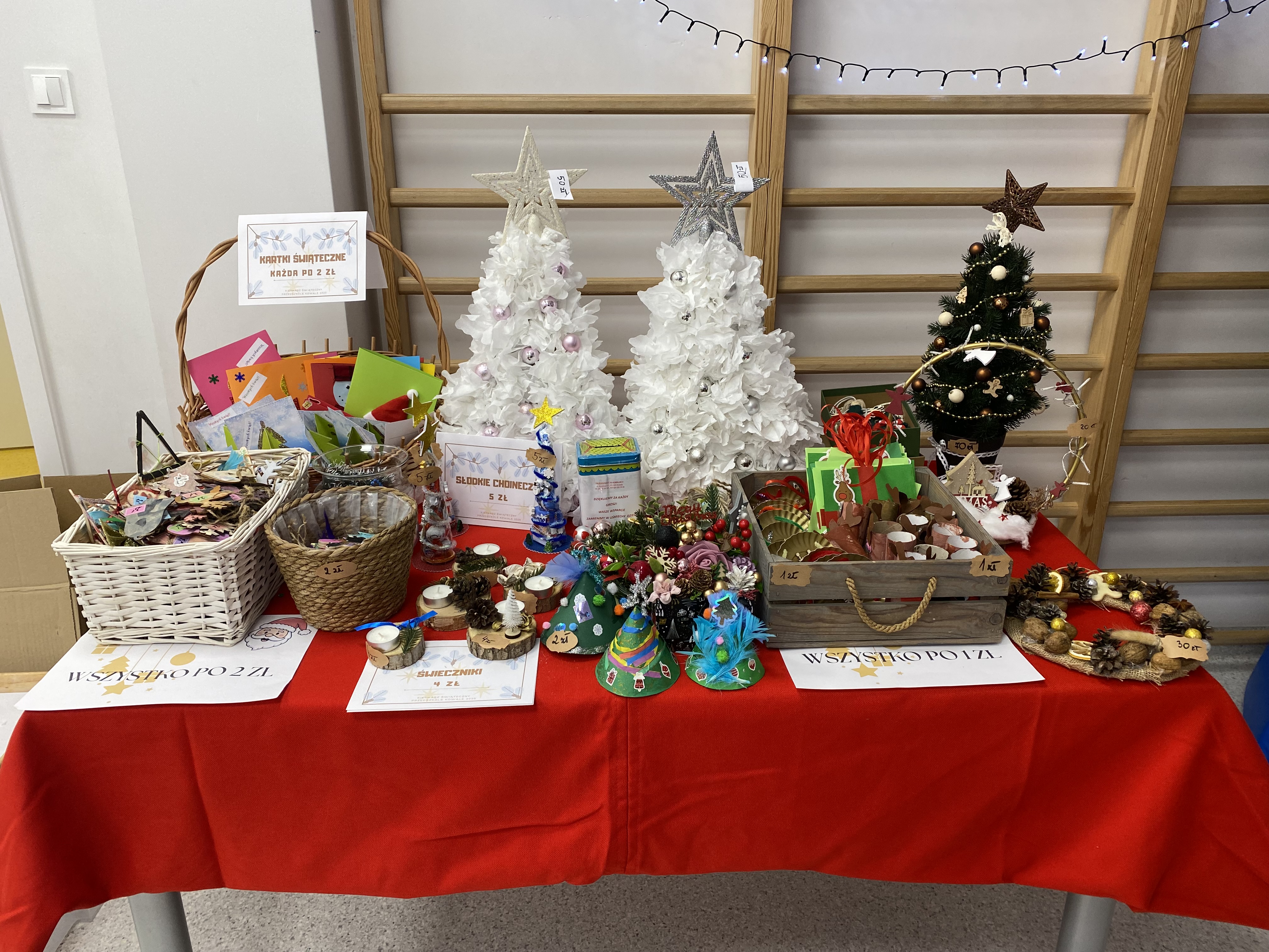 Podczas kiermaszu Rodzice wraz z dziećmi mogli nabyć: ⭐ własnoręcznie wykonane ozdoby świąteczne ⭐ kartki bożonarodzeniowe ⭐ dekoracje przygotowane przez dzieci oraz nauczycieli ⭐ świąteczne upominki i drobne rękodzieło