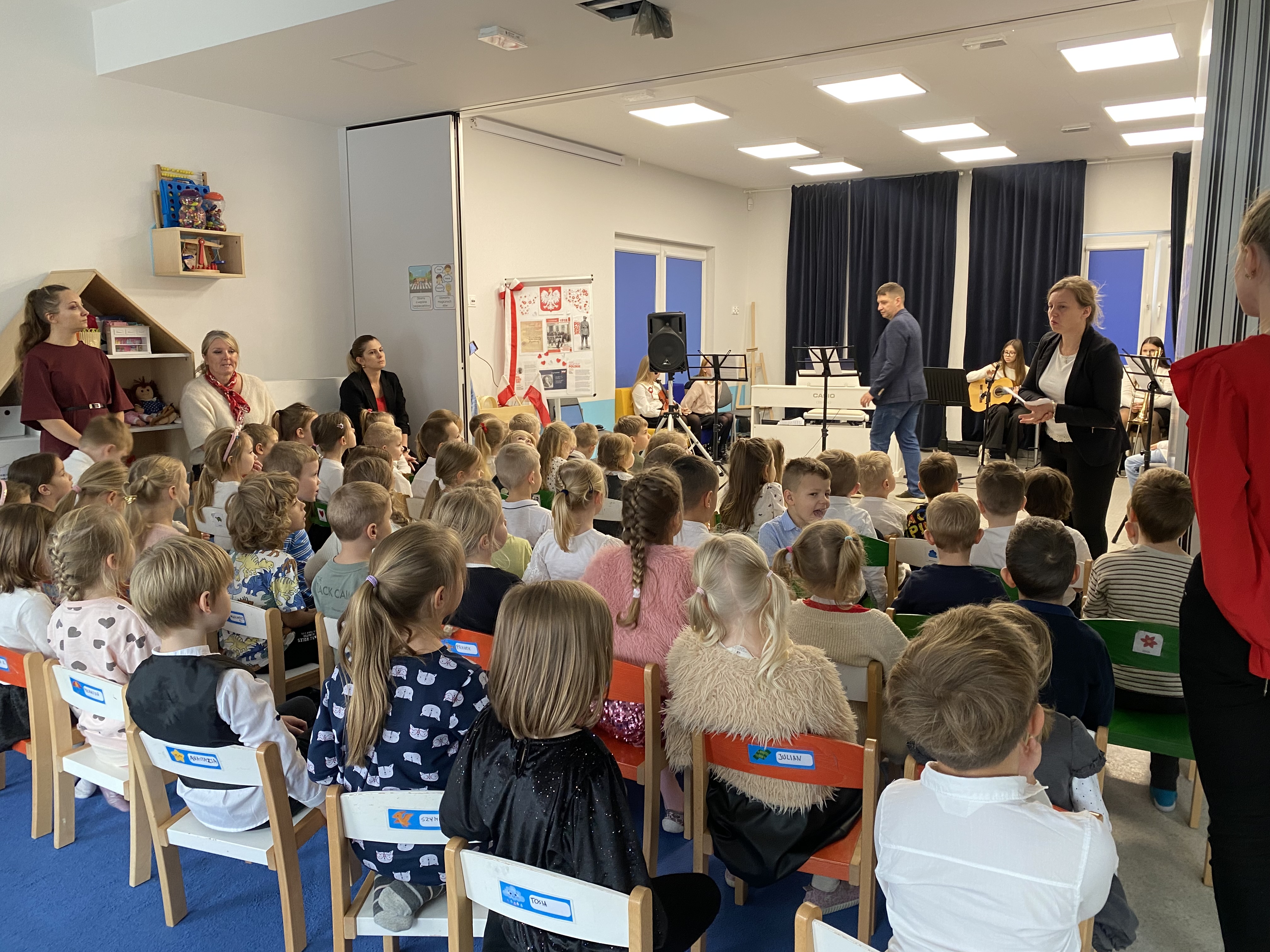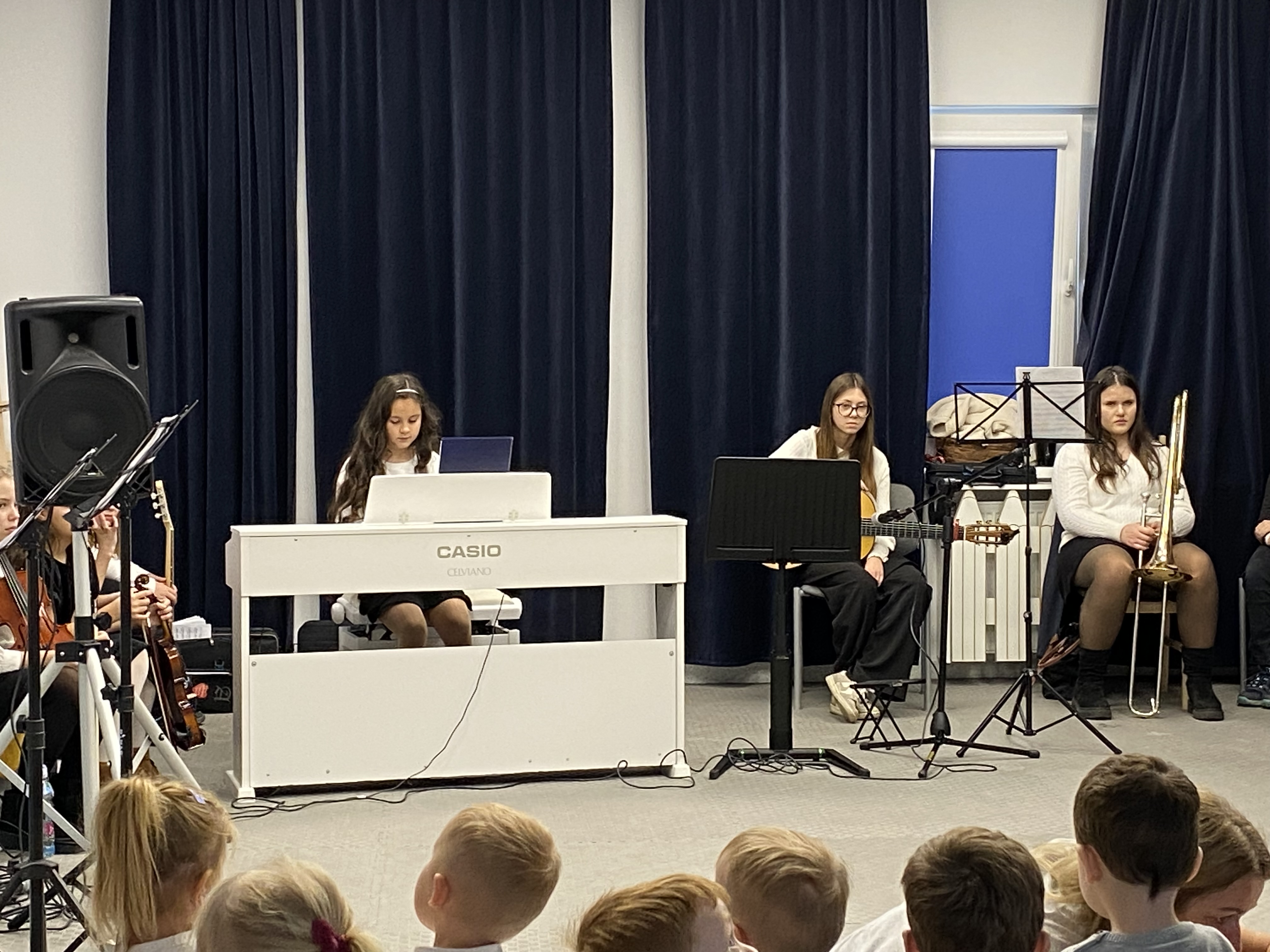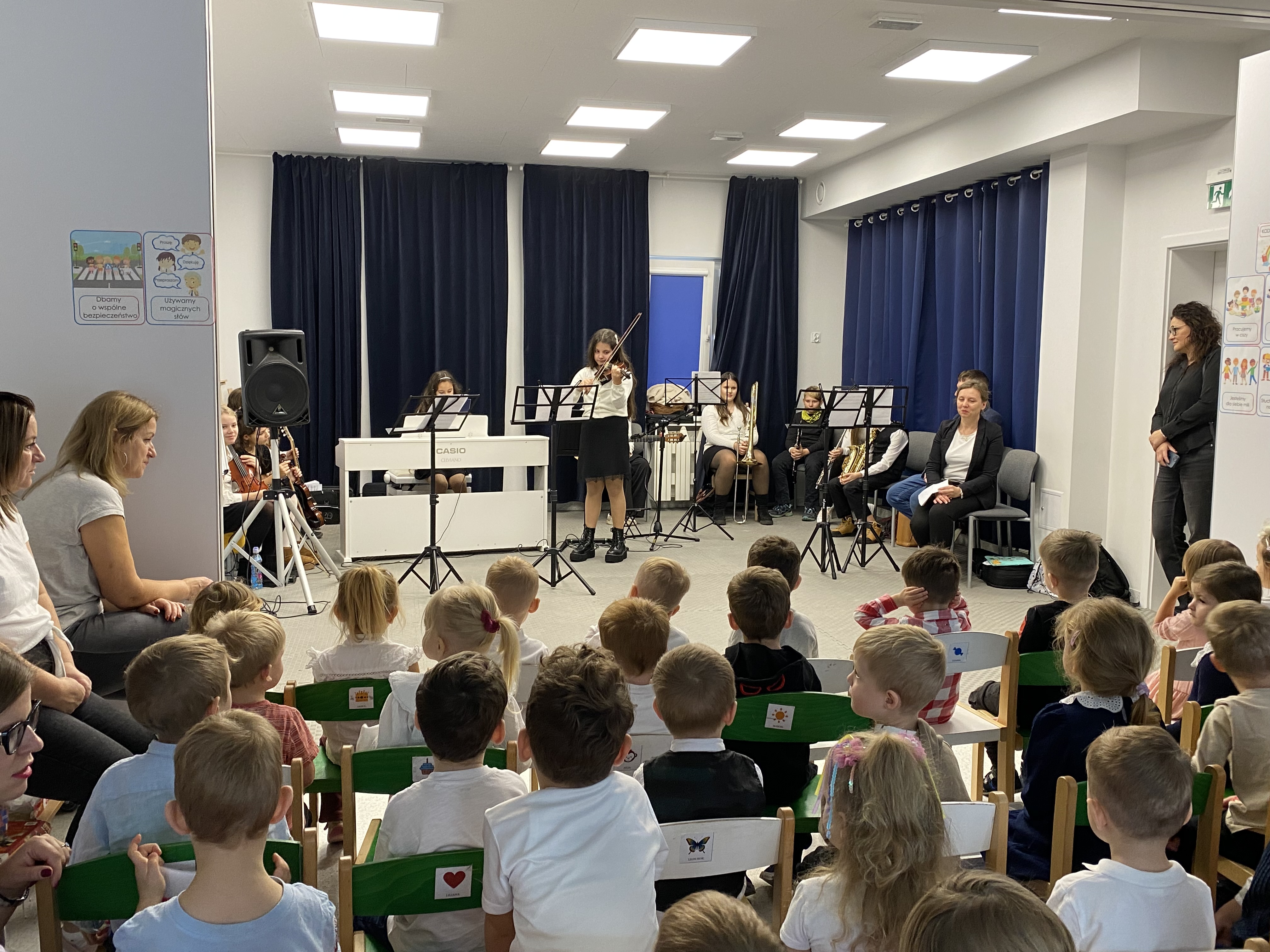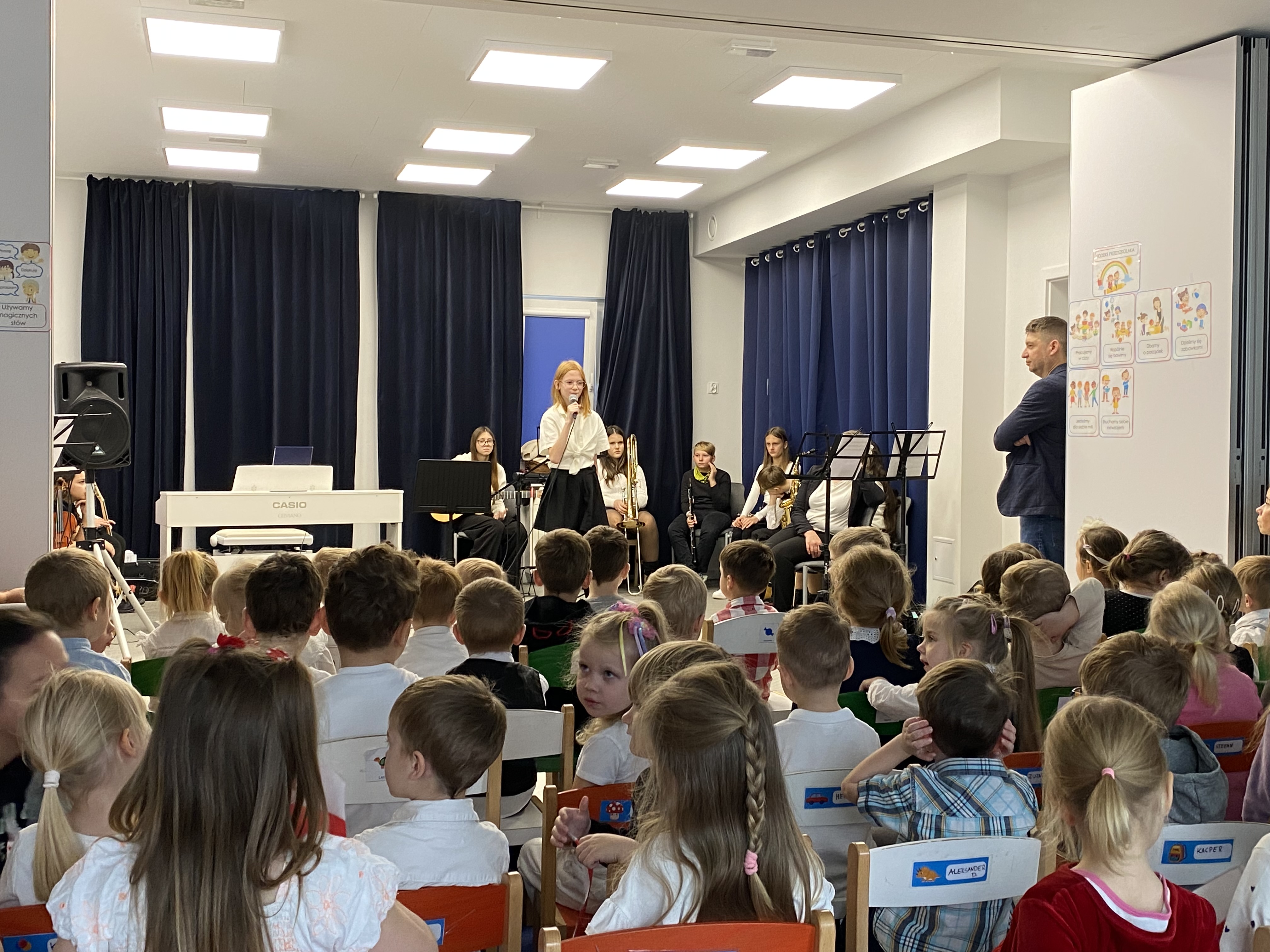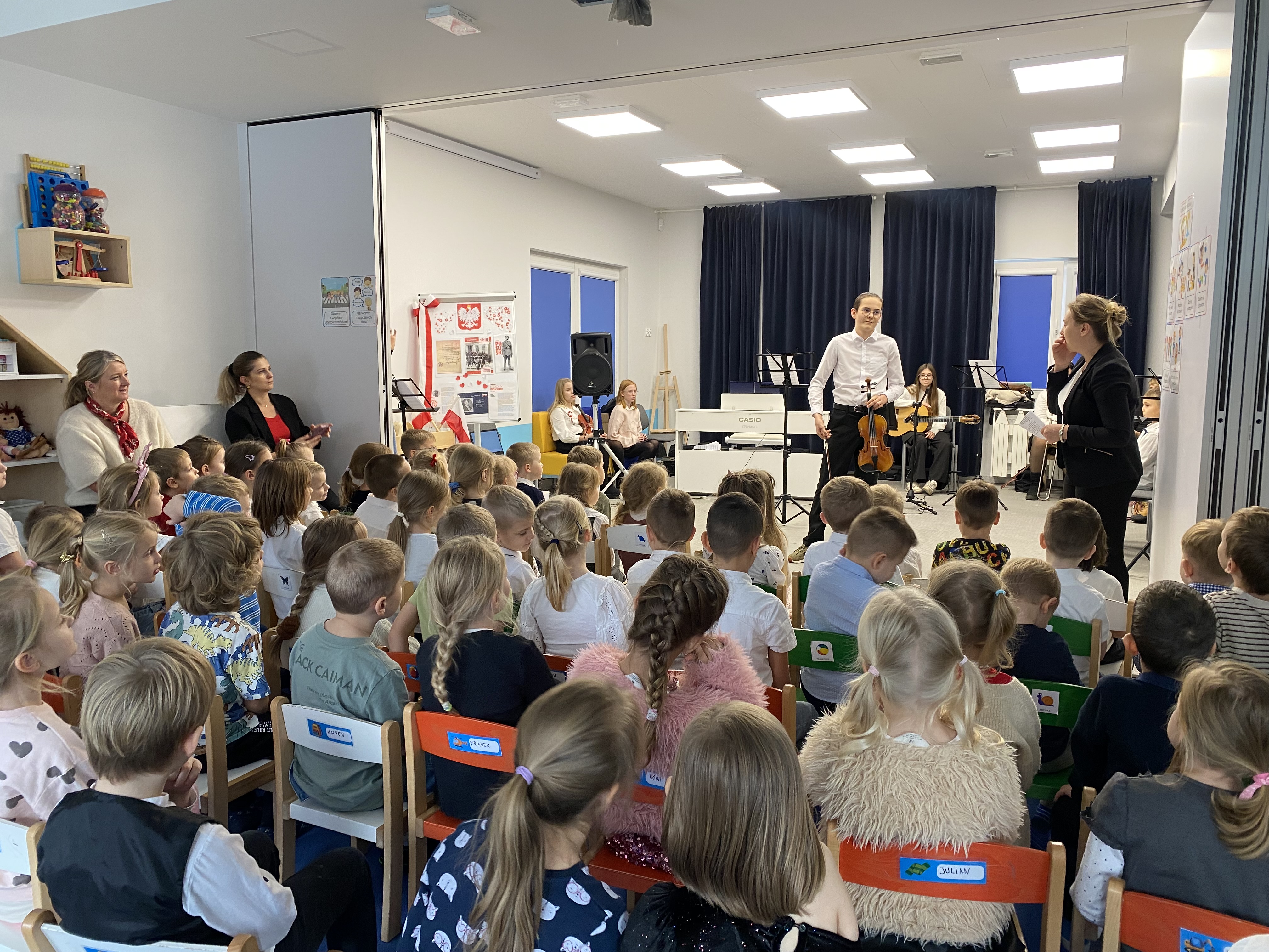 Z okazji obchodów Narodowego Święta Niepodległości – 11 listopada, dziś mieliśmy zaszczyt gościć w naszej społeczności uczniów i nauczycieli Niepublicznej Szkoły Muzycznej I stopnia "Artis" w Kowalach, którzy przygotowali wyjątkowy koncert. Młodzi artyści zaprezentowali piękny, patriotyczny repertuar, pełen wzruszających melodii i utworów niosących ducha wolności. Ich występ dostarczył publiczności wielu emocji i był wspaniałym uzupełnieniem obchodów tego ważnego dla nas wszystkich dnia. Serdeczne podziękowania Szkole Muzycznej"Artis" za obecność, zaangażowanie i wspaniałe muzyczne przeżycia!