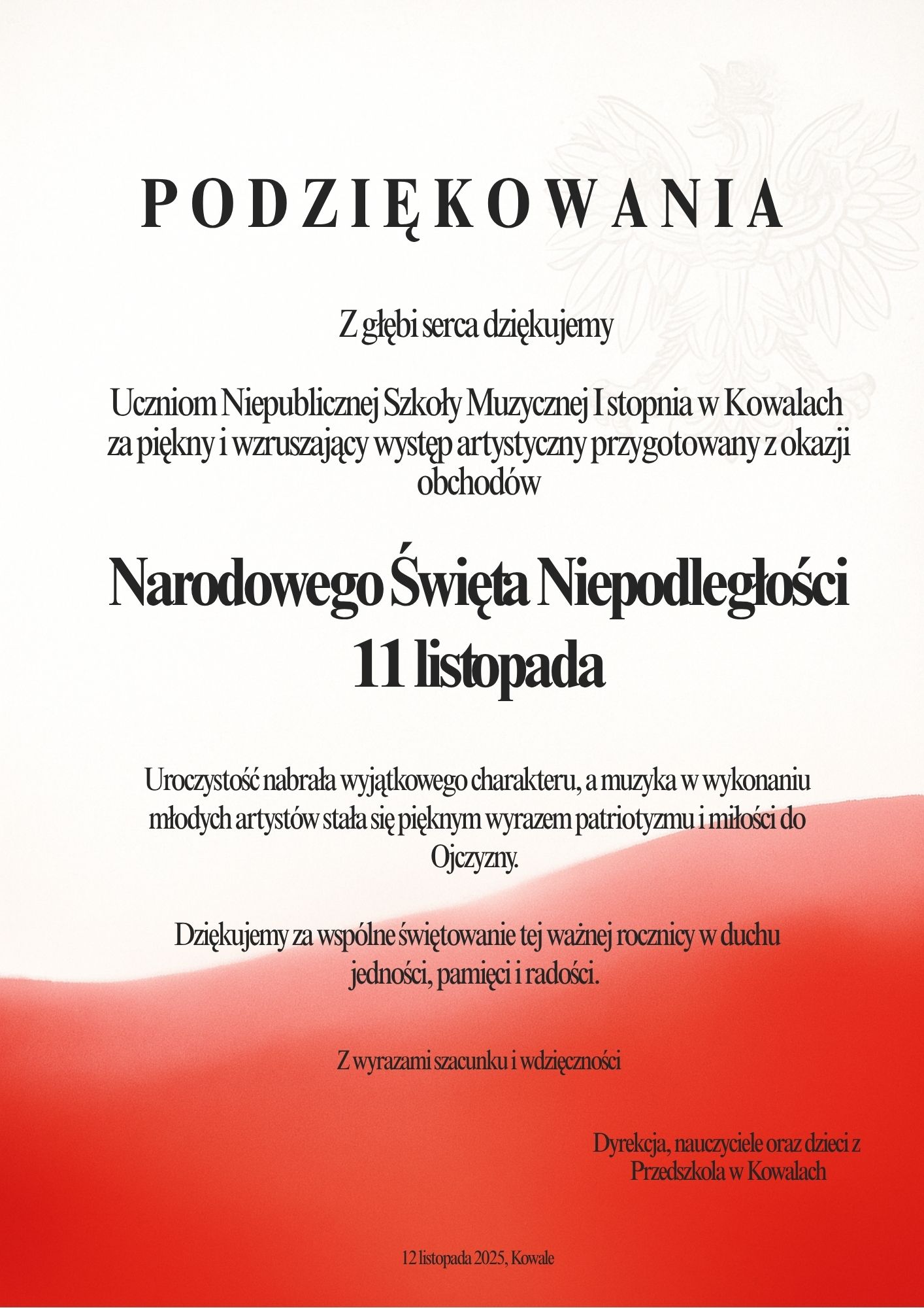 Niech muzyka, tak jak nasza niepodległość, łączy pokolenia i przypomina o tym, jak ważne są wolność, pasja i wspólne świętowanie.