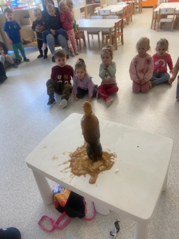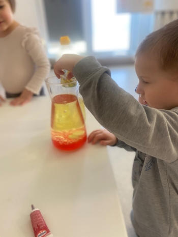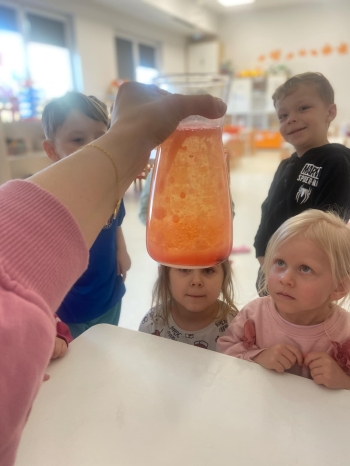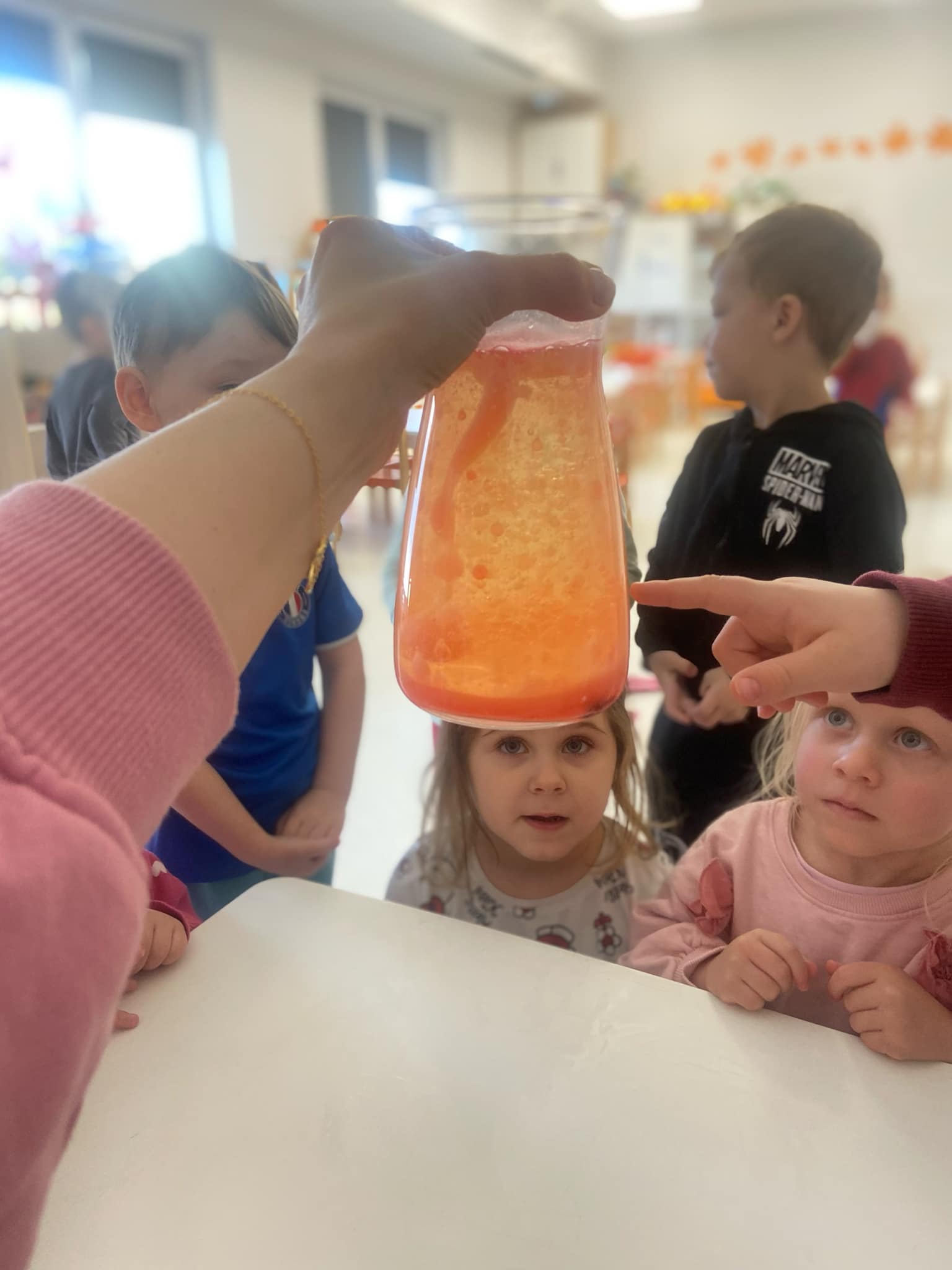 Nauka przez zabawę czyli esperymenty w grupie Motylki: lampa lawa oraz wulkan. Zapraszamy do galerii.