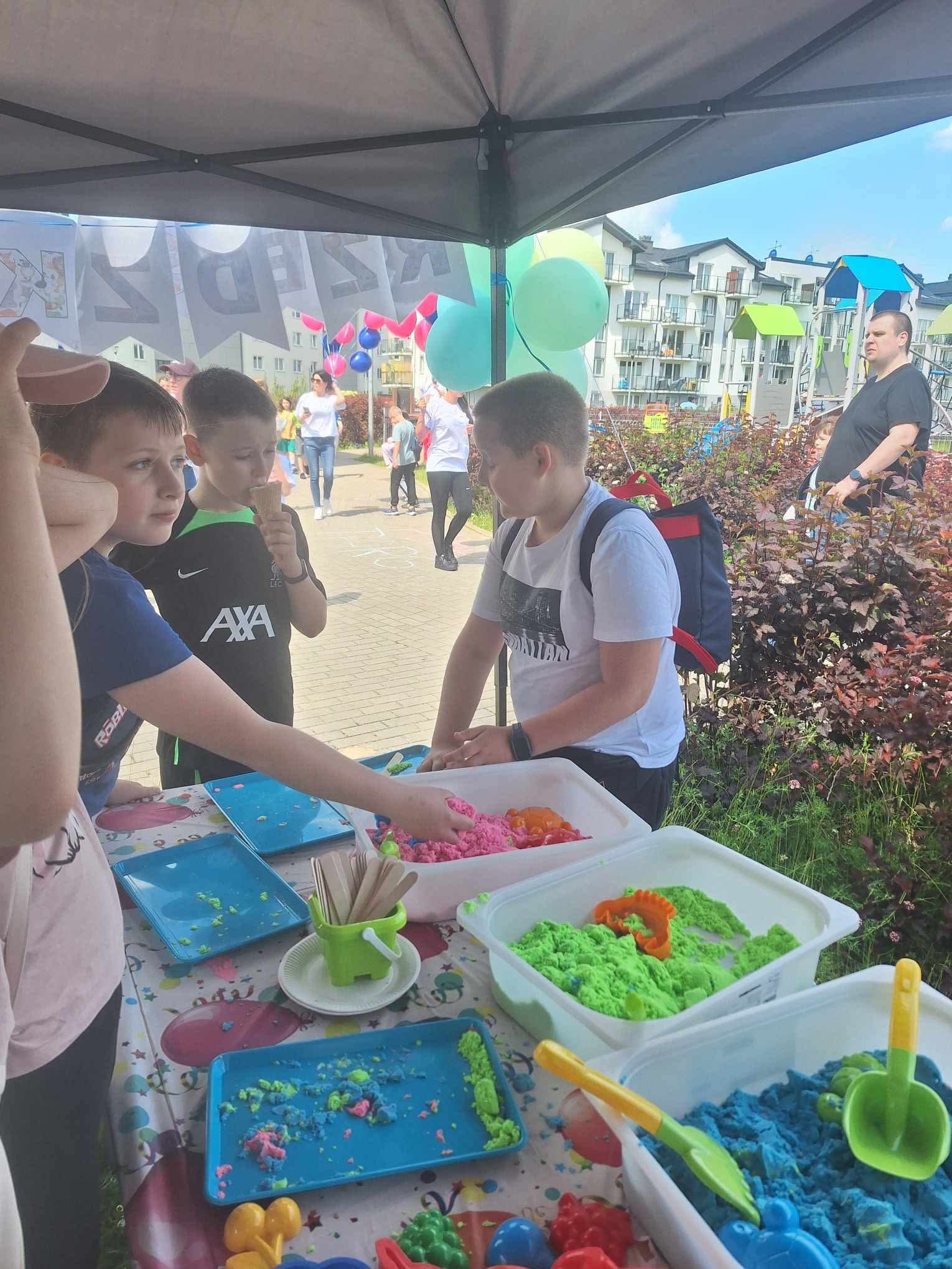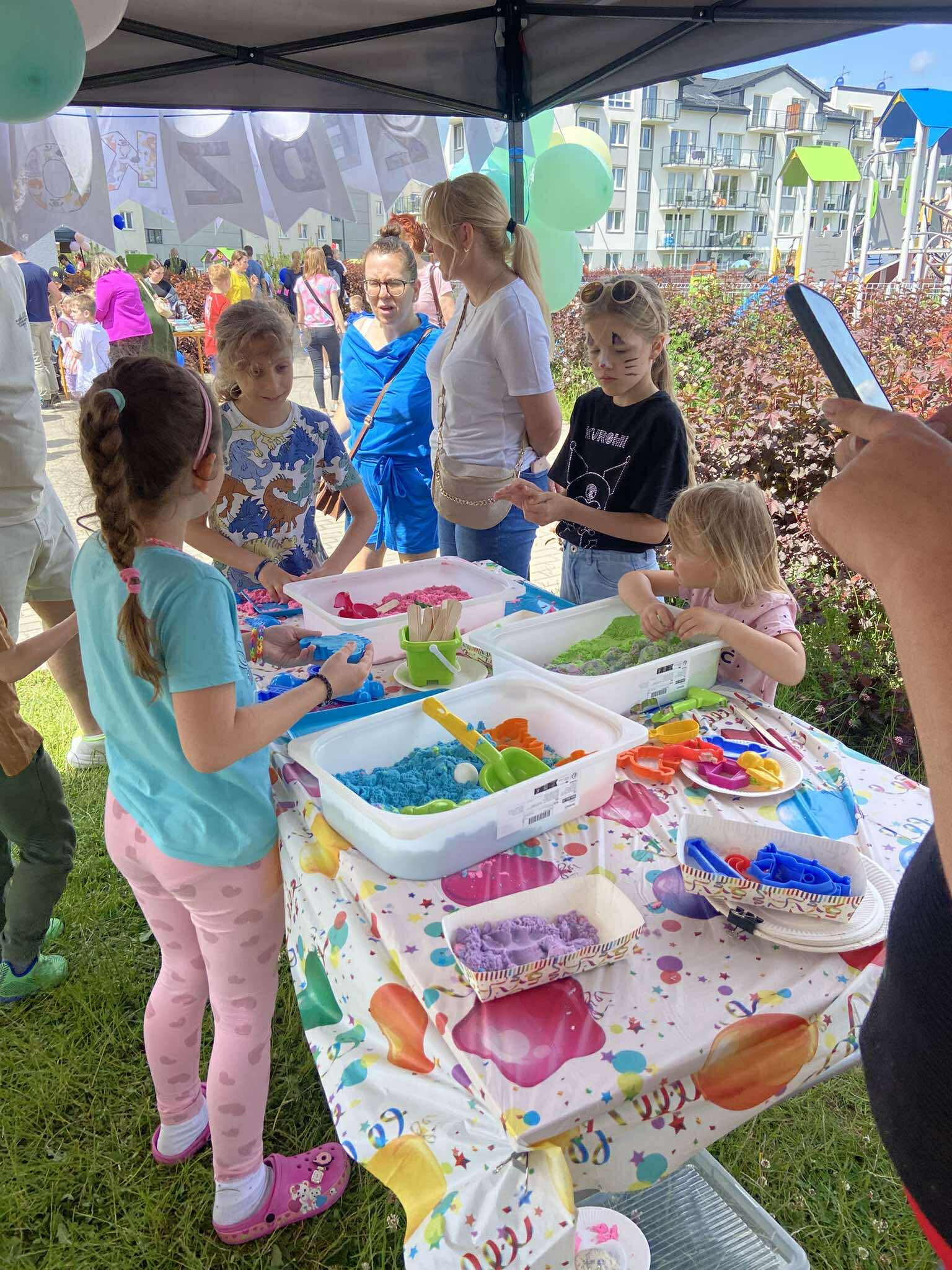 Podczas festynu 7 czerwca, dzieci mogły skorzystać ze specjalnych atrakcji takich jak malowanie twarzy, zabawy sensoryczne z piaskiem kinetycznym. Podziękowania dla wyjątkowego DJ Spidermana, który zadbał o muzyczne emocje! Nie mogło zabraknąć także kolejek pociągowych, które cieszyły się ogromnym zainteresowaniem małych i dużych pasażerów.