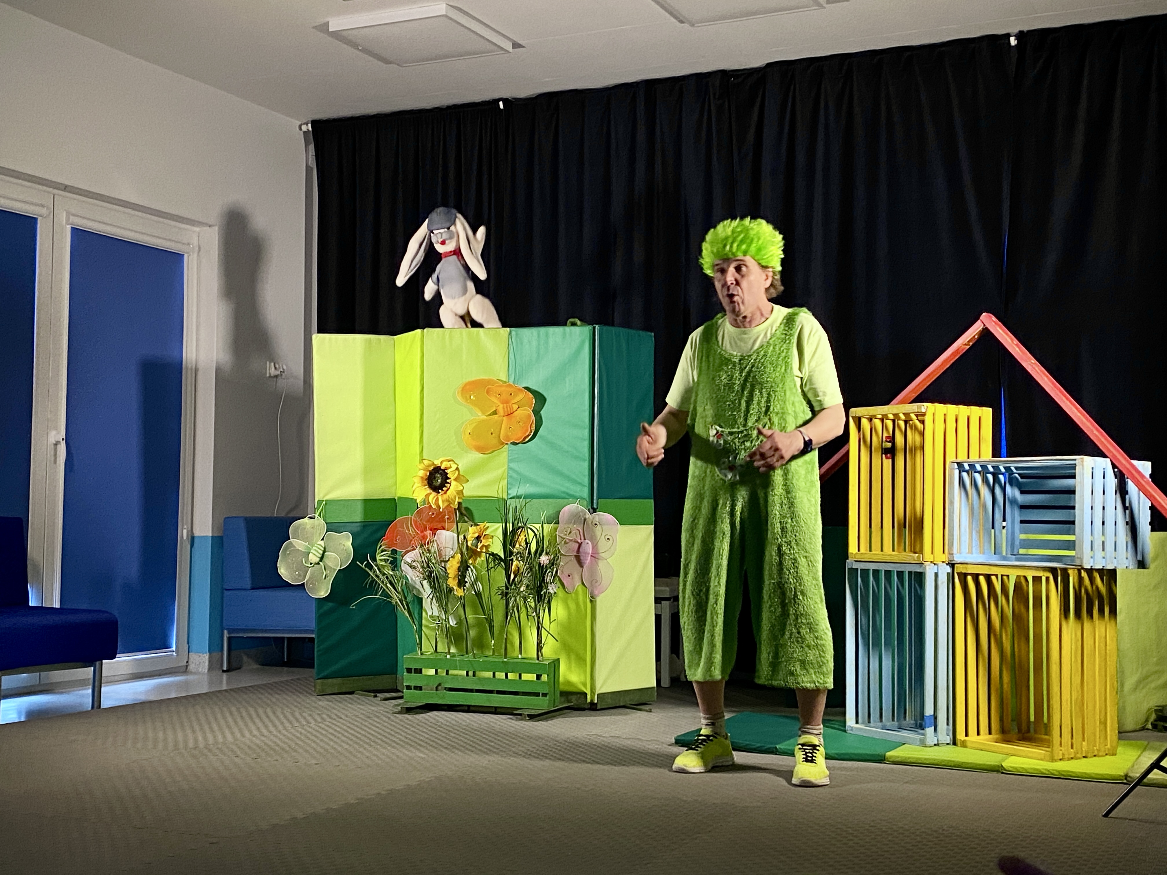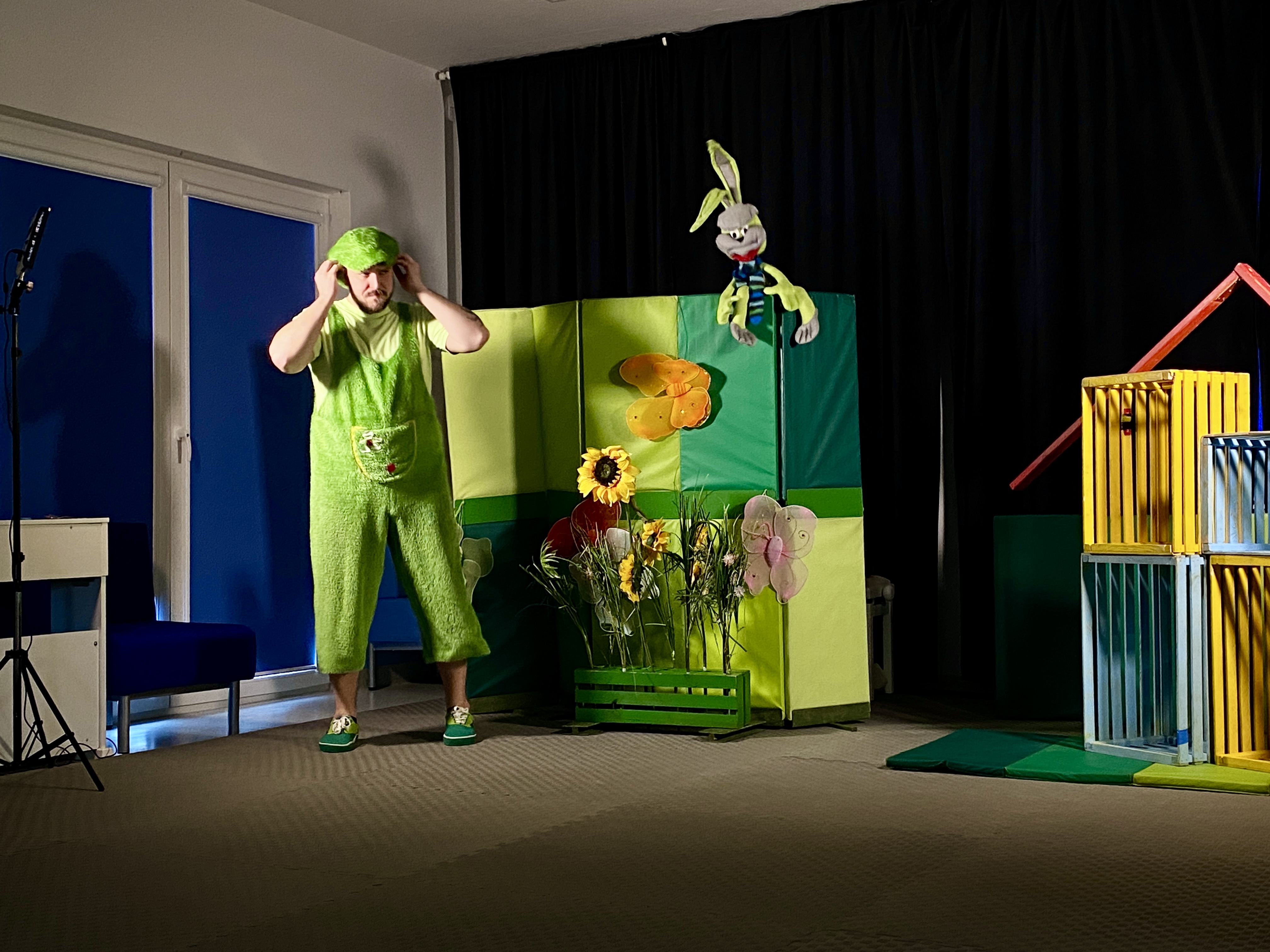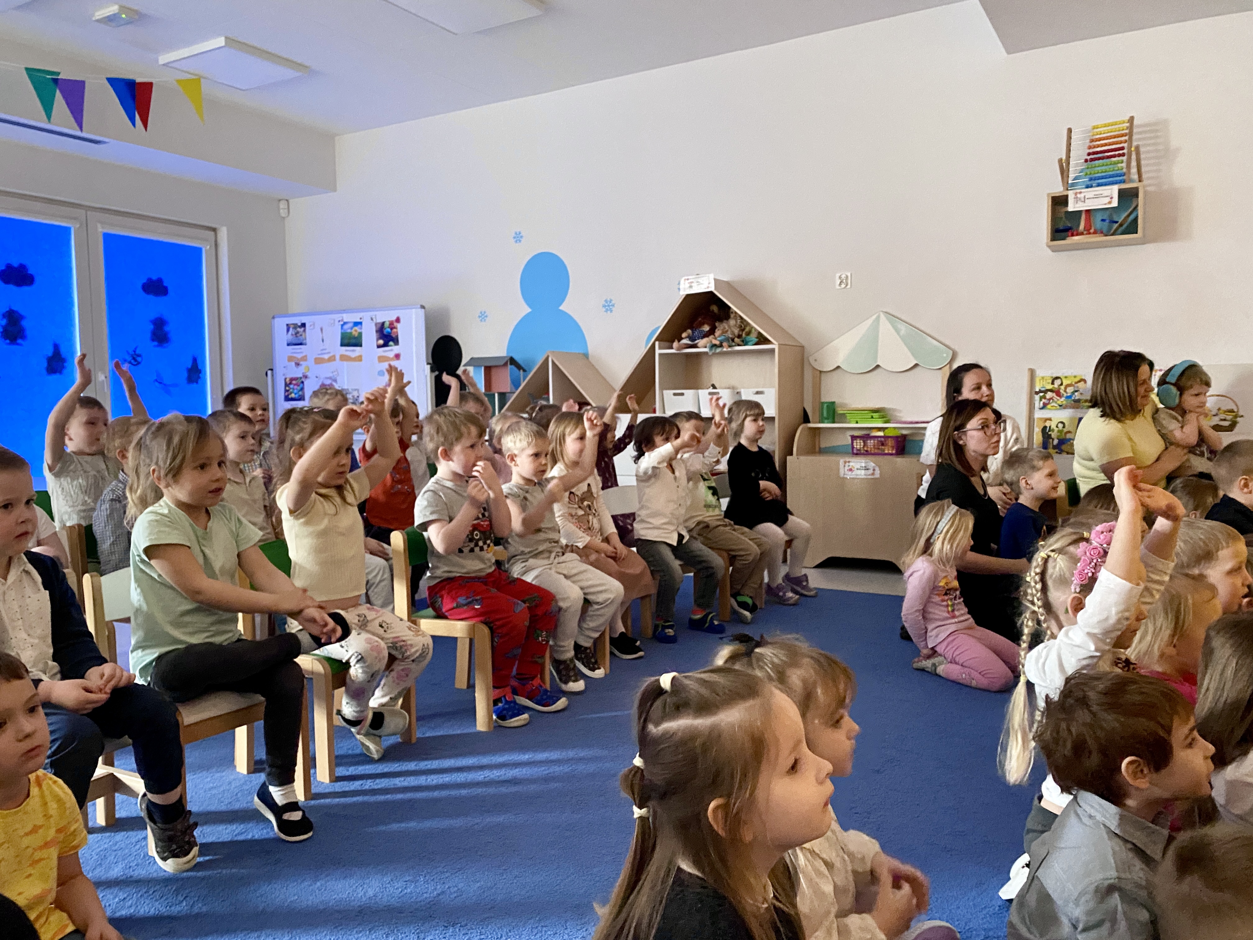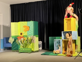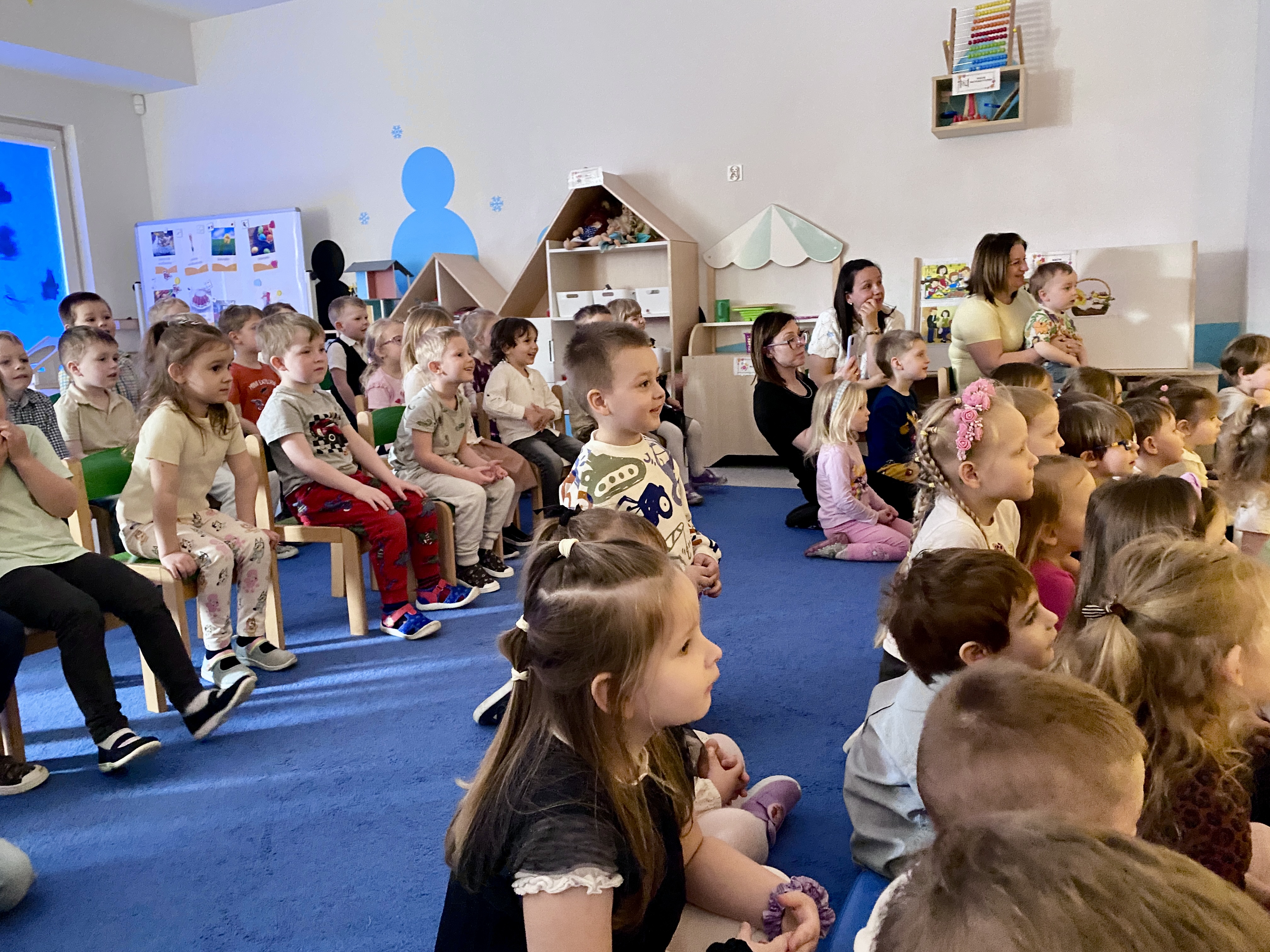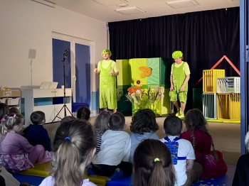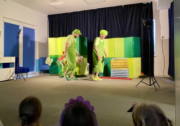 7 kwietnia w naszym przedszkolu odbyło się przedstawienie pt:"Zajączek Bączek" wystawianego przez Teatr Qfer dla dzieci. Spektakl opowiada o Zajączku, który chce być do czegoś potrzebny, ale nie bardzo mu to wychodzi... W spektaklu miały okazję uczestniczyć wszystkie przedszkolaki.