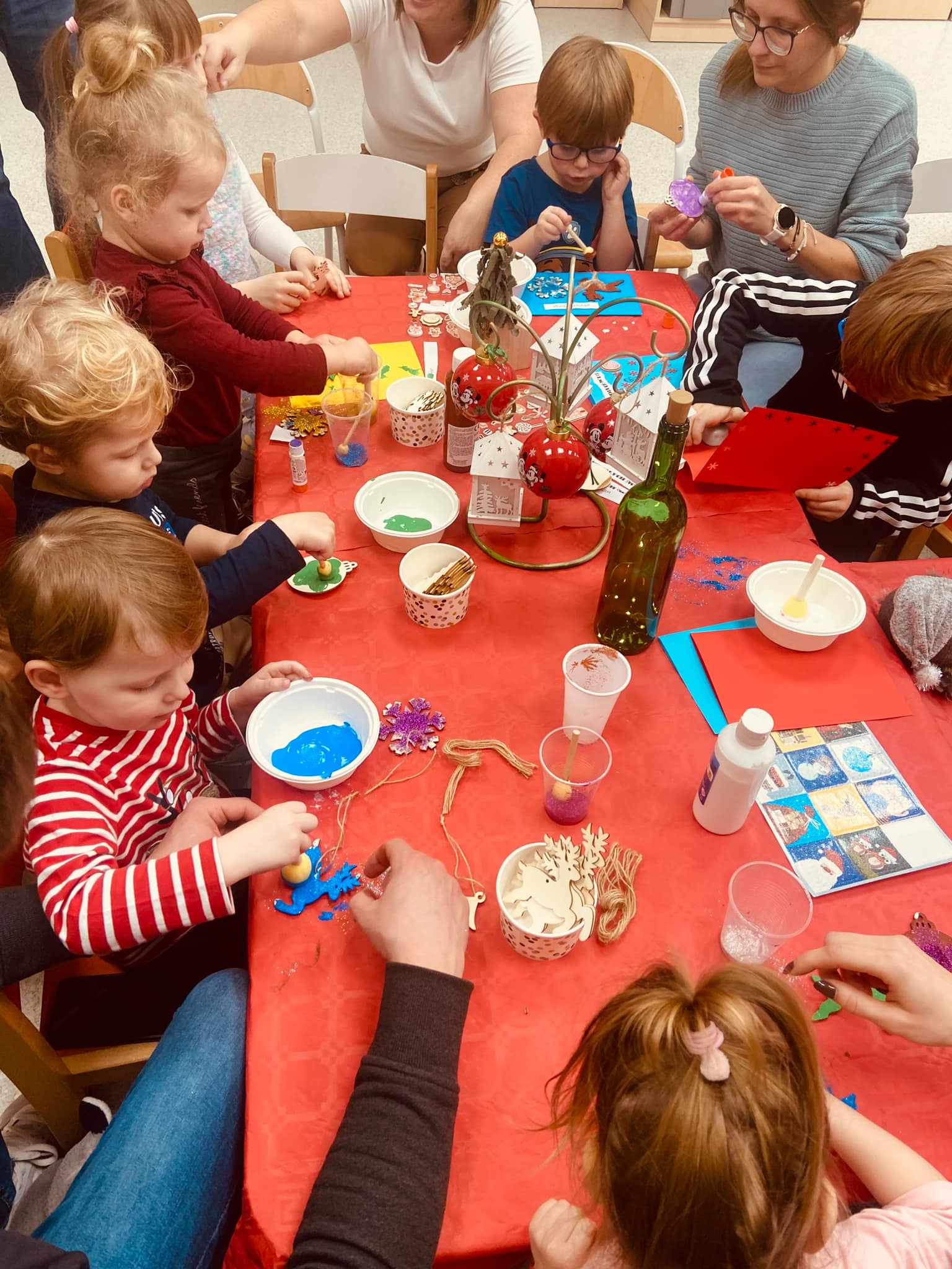 Święta Bożego Narodzenia to szczególny czas. Aby w naszym przedszkolu zagościła świąteczna atmosfera, w grudniu zostały zorganizowane w grupie Motylków warsztaty Bożonarodzeniowe dla rodziców i dzieci. Celem było wykonanie stroików świątecznych. Rodzice wspólnie z dziećmi, z zapałem wykonywali piękne ozdoby, wykazując przy tym wiele zdolności, pomysłowości i kreatywności. Powstało bardzo dużo przepięknych i niepowtarzalnych dekoracji, które zostały przekazane na kiermasz bożonarodzeniowy. Serdecznie dziękujemy rodzicom za przybycie, zaangażowanie, pomoc i wspólnie spędzony czas.