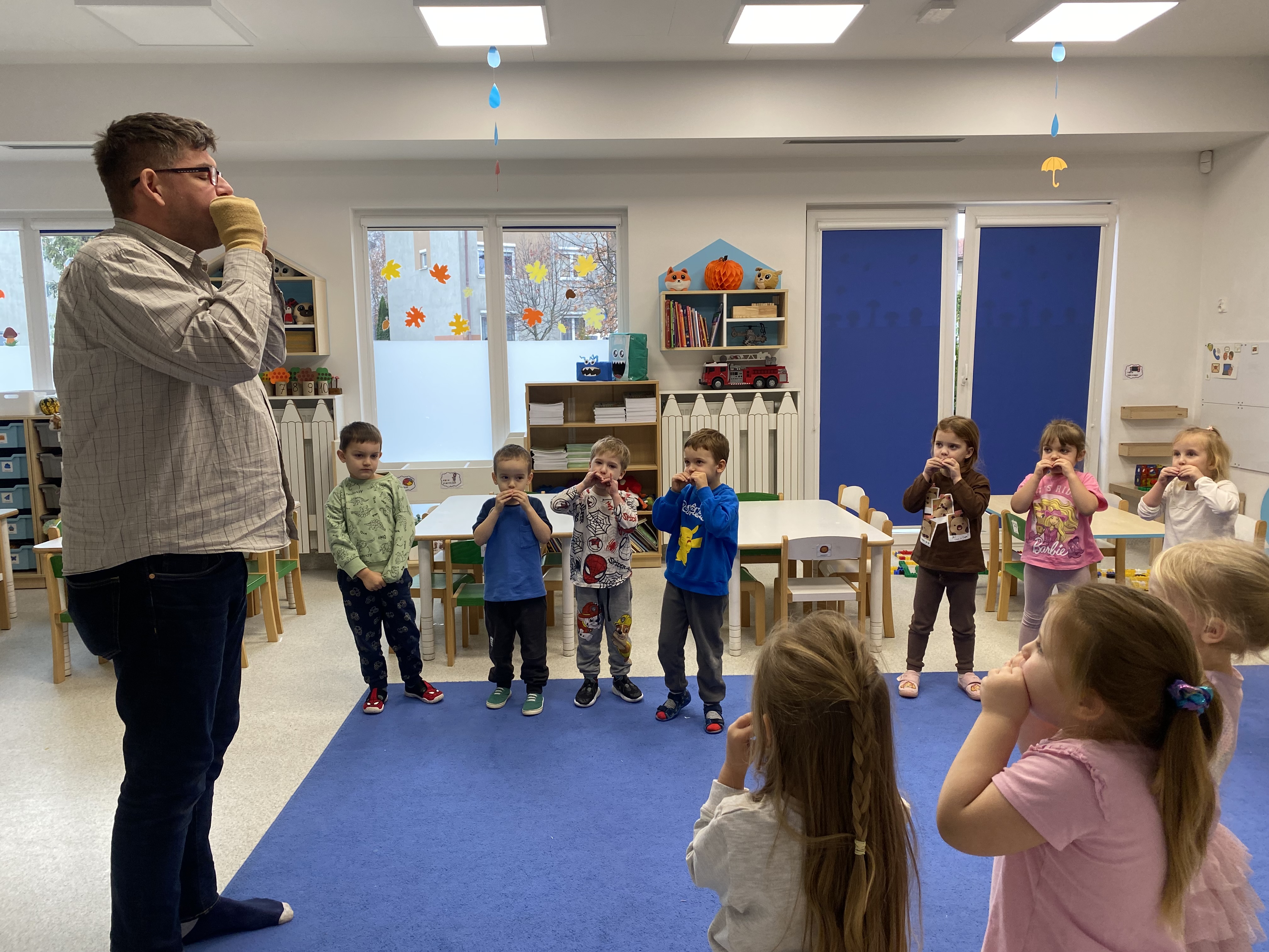 Wczoraj 18 listopada, w naszym przedszkolu odbyły się wyjątkowe warsztaty aktorskie, które wprowadziły dzieci w świat teatru, kreatywności i wyobraźni. Pod okiem doświadczonego aktora p. Bartosza Marciniaka z Teatru Wędrownego "Włóczykij", przedszkolaki miały okazję:
