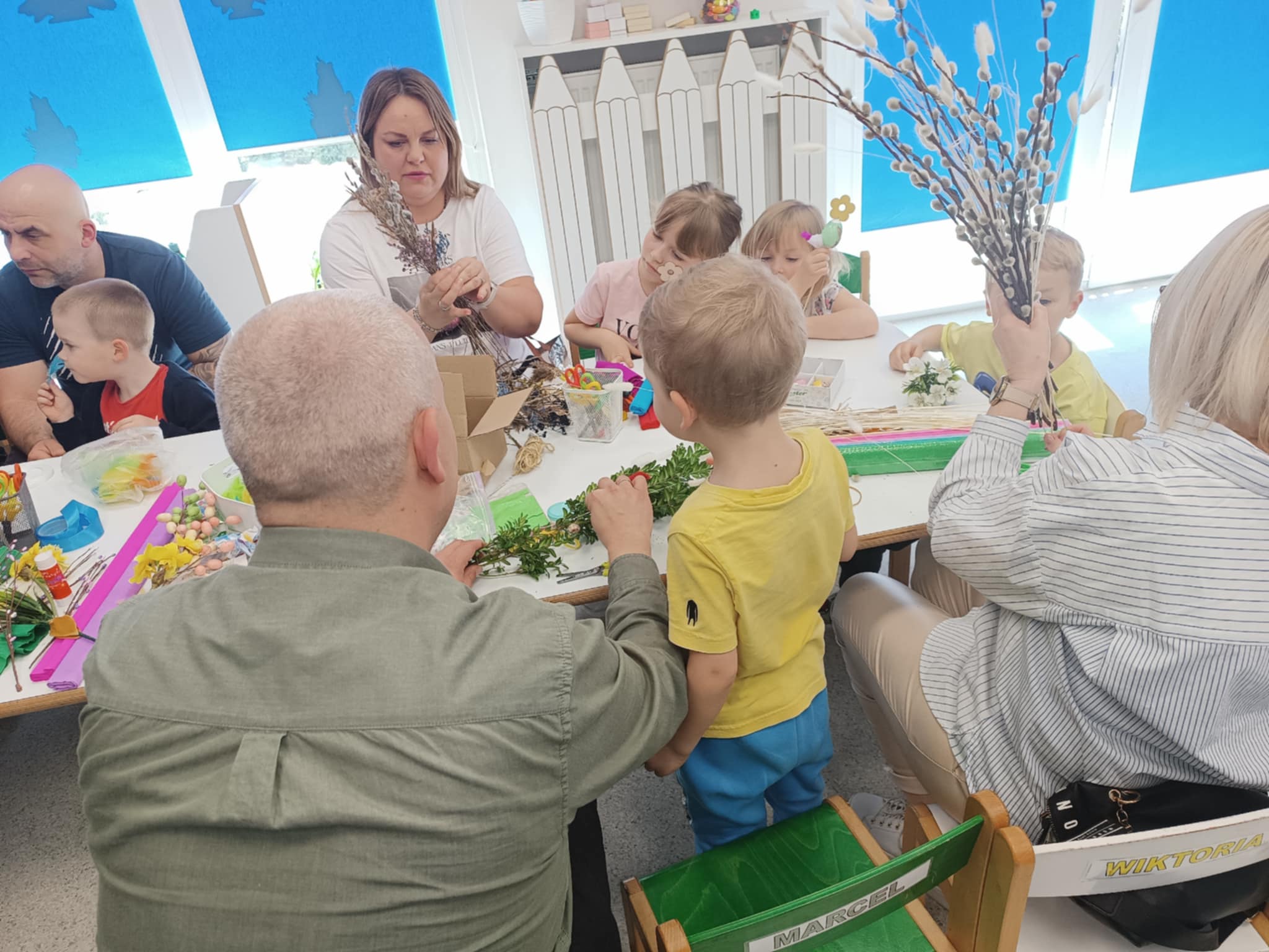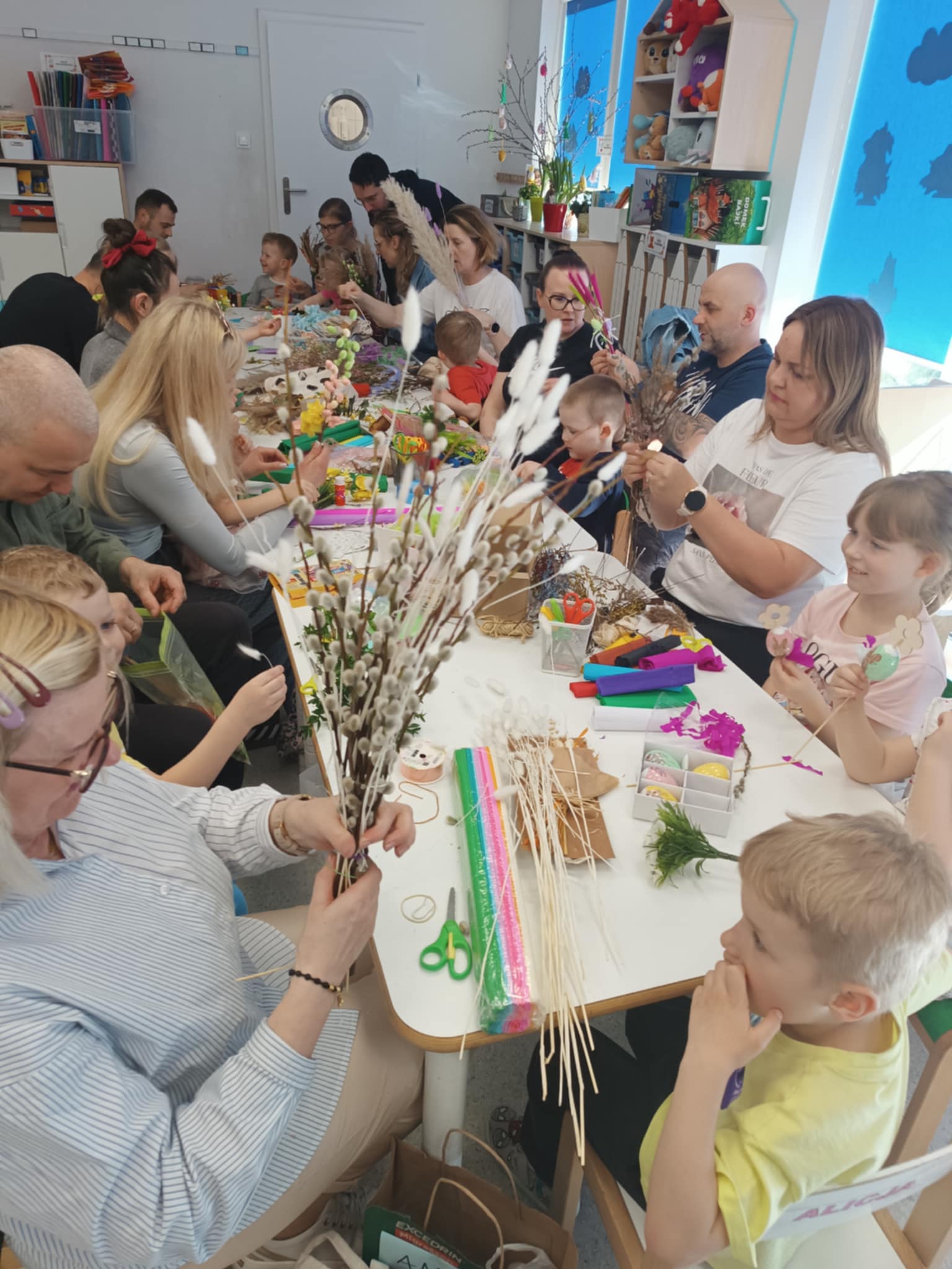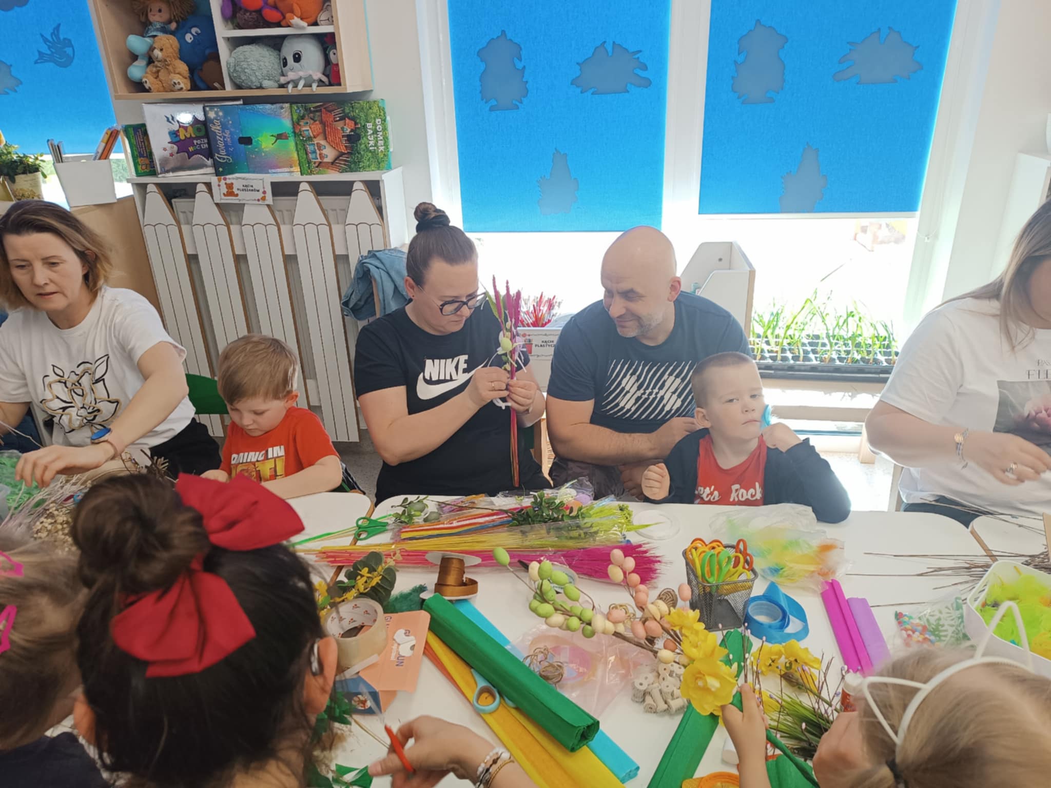 Dzieci z grupy Sówki zaprosiły swoich rodziców by wspólnie zrobić piękne palmy wielkanocne. Wszyscy bardzo się zaangażowali we wspólną pracę, śpiewając przy tym piosenki o wiośnie. Wspólna praca sprawiła wiele radości dzieciom i rodzicom. Zapraszamy do galerii zdjęć z tego wydarzenia.
