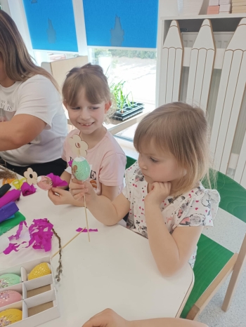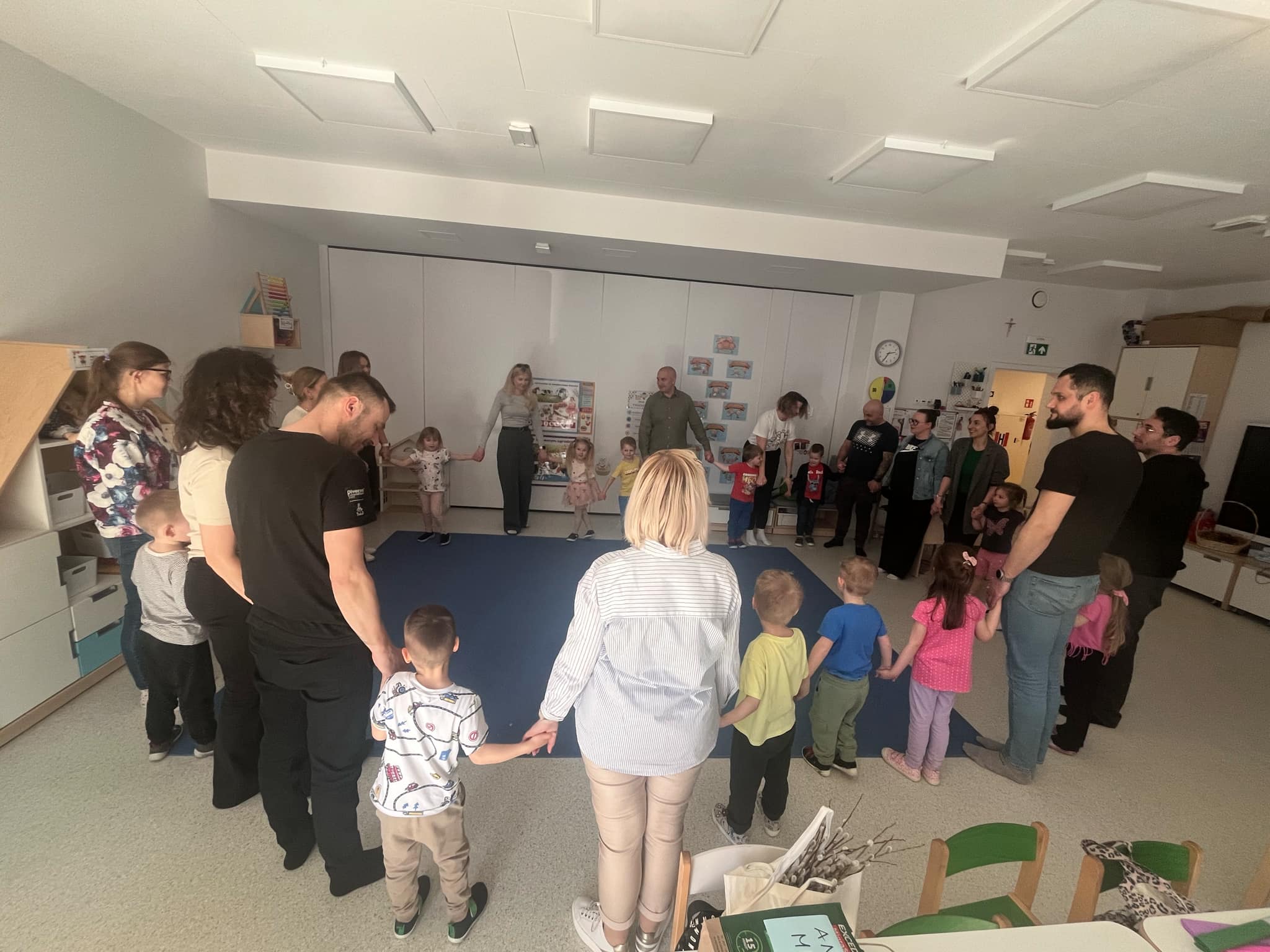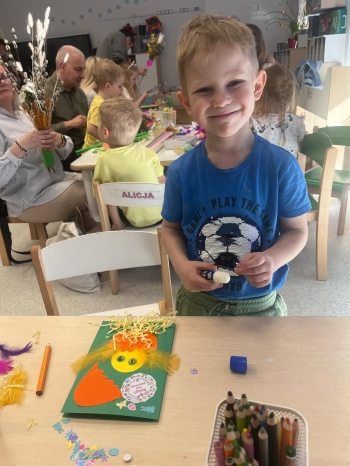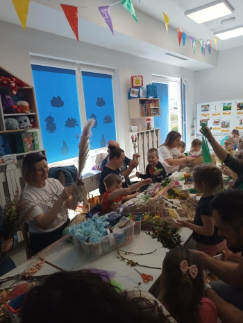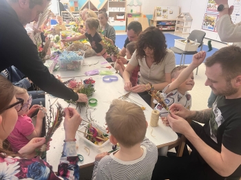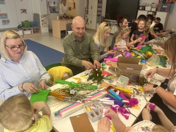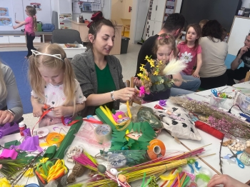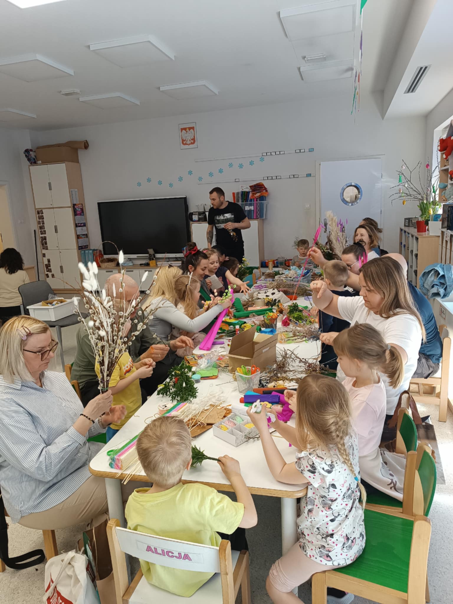 Dzieci z grupy Sówki zaprosiły swoich rodziców by wspólnie zrobić piękne palmy wielkanocne. Wszyscy bardzo się zaangażowali we wspólną pracę, śpiewając przy tym piosenki o wiośnie. Wspólna praca sprawiła wiele radości dzieciom i rodzicom. Zapraszamy do galerii zdjęć z tego wydarzenia.