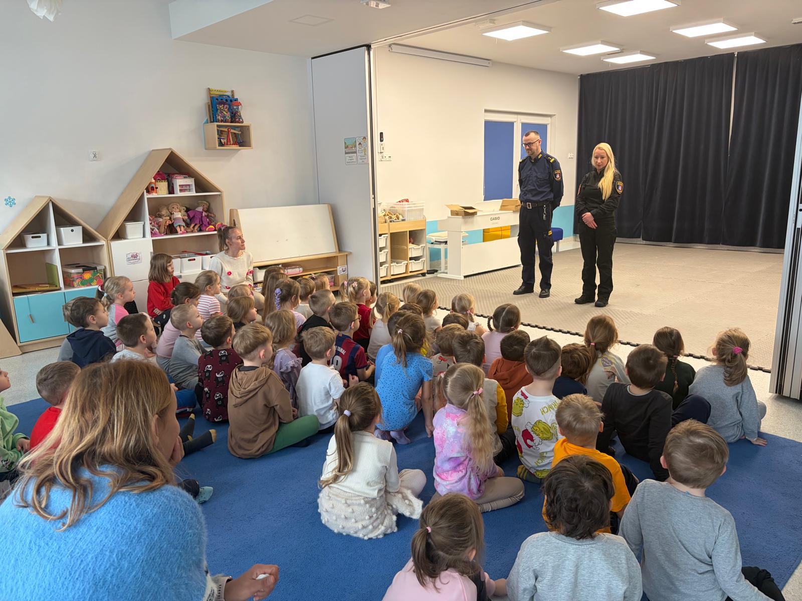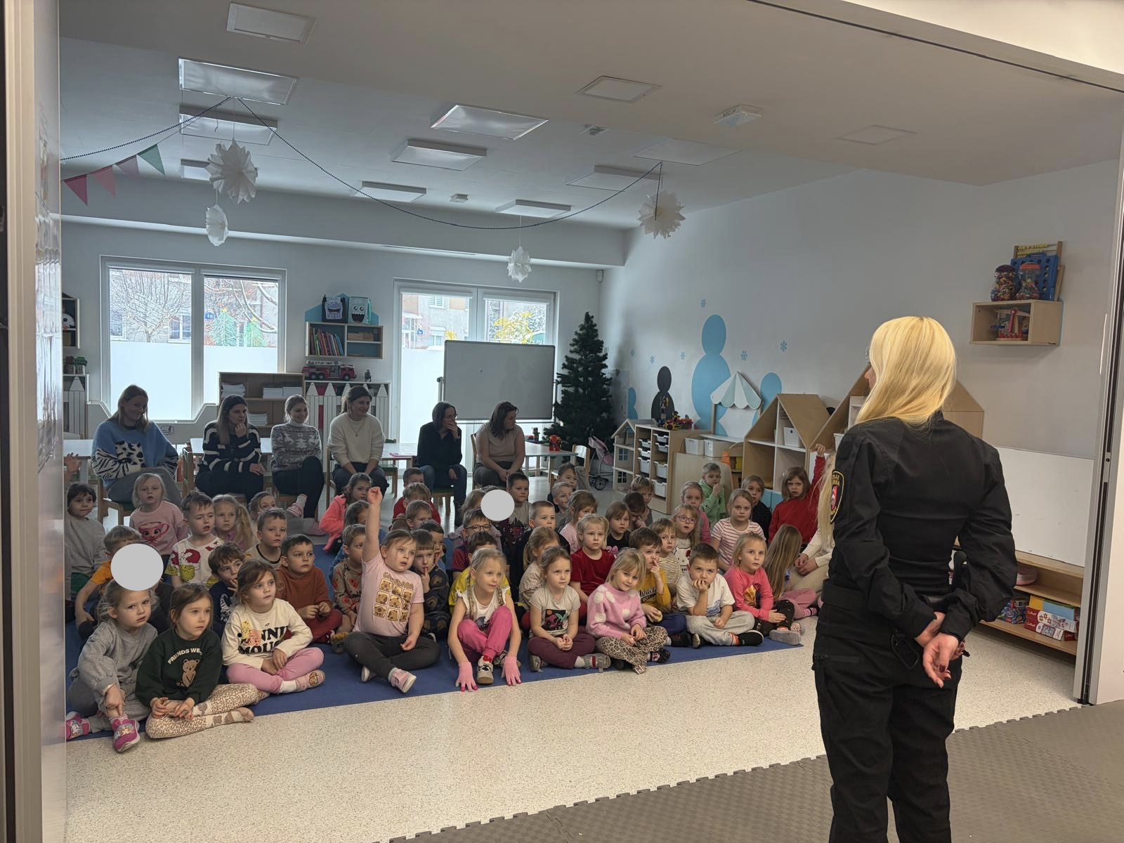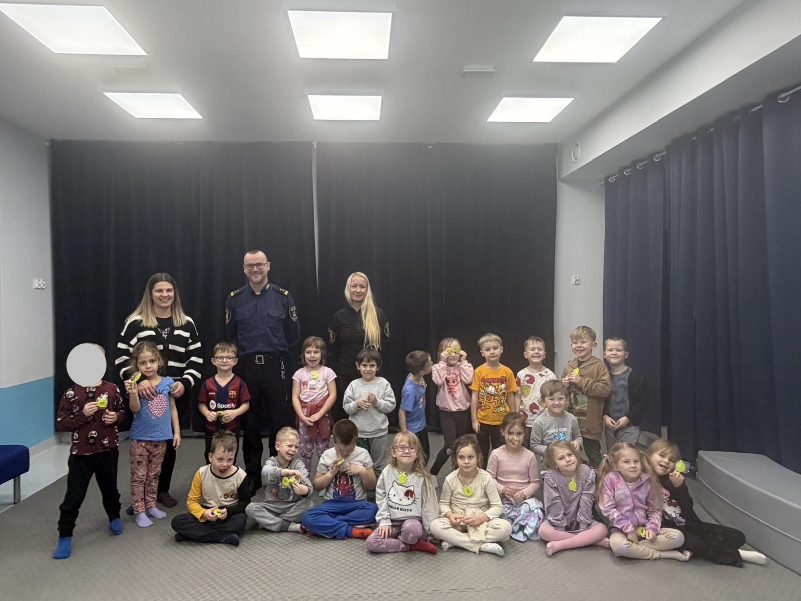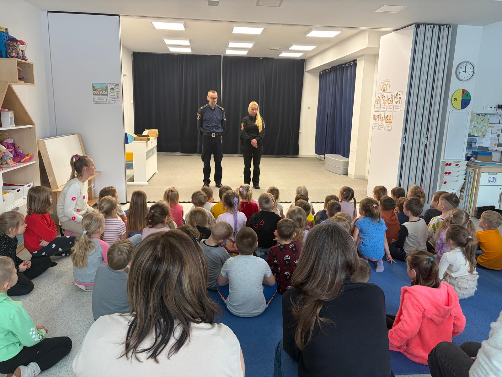 W naszym przedszkolu gościliśmy w poniedziałek 12 stycznia, wyjątkowych gości – funkcjonariuszy Straży Gminnej w Kolbudach. Spotkanie było doskonałą okazją do rozmów o bezpieczeństwie oraz zasadach prawidłowego zachowania się w różnych sytuacjach, z którymi dzieci mogą spotkać się na co dzień. Strażnicy w ciekawy i przystępny sposób opowiedzieli przedszkolakom o swojej pracy, pokazali elementy umundurowania oraz przypomnieli najważniejsze zasady bezpieczeństwa na drodze, w domu i podczas zabawy na świeżym powietrzu. Dzieci z dużym zainteresowaniem słuchały, chętnie zadawały pytania i aktywnie uczestniczyły w spotkaniu.
