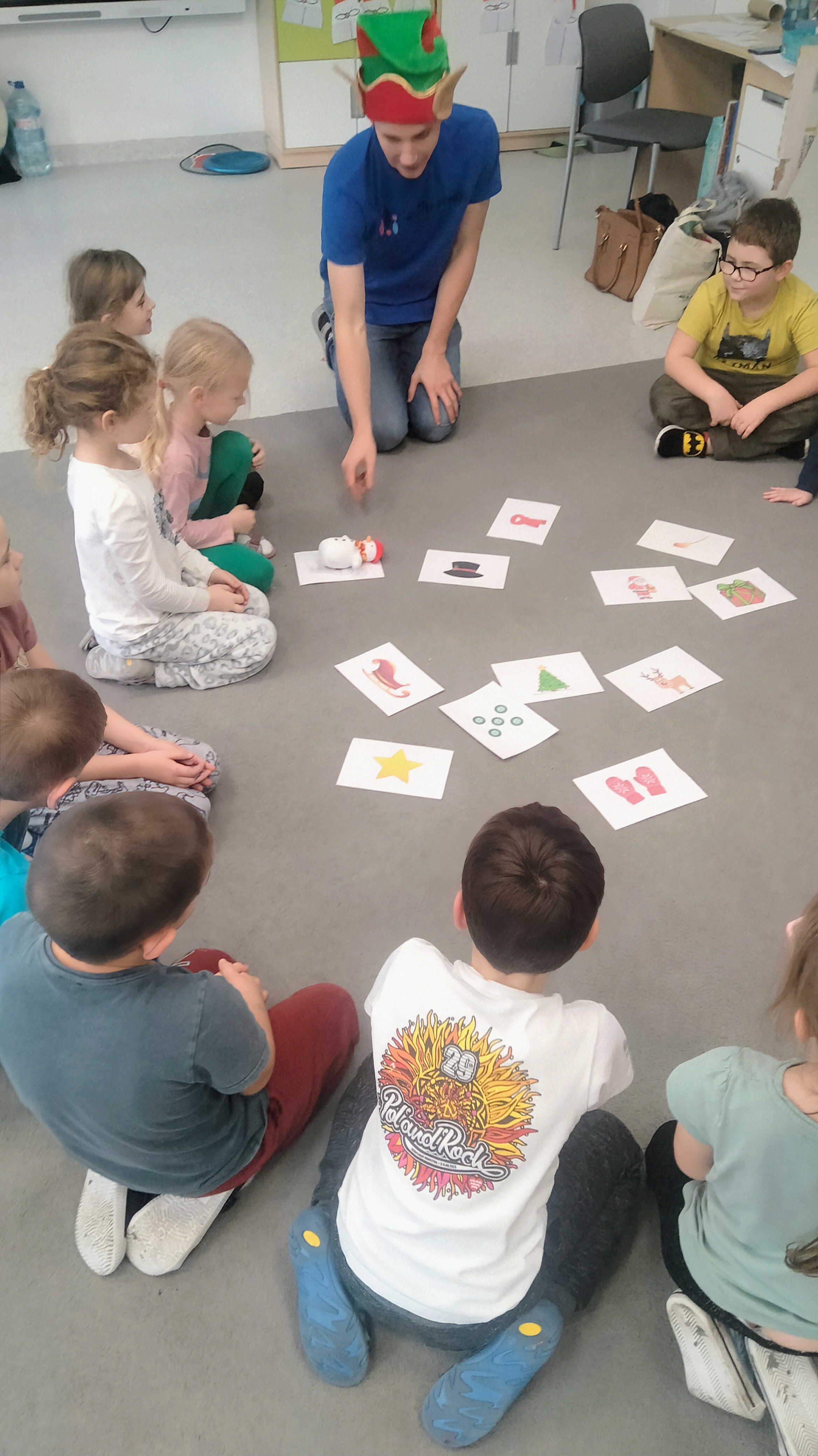 17 grudnia w naszym przedszkolu, ponownie odbyły się warsztaty językowe pod tytułem: "Winter Workshops", organizowanym przez szkołę języka angielskiego Early Stage. W zajęciach wzięły udział starszaki. Przedszkolaki miały okazję zapoznać się ze świątecznymi słówkami, czytaniem książeczki w języku angielskim, zaśpiewaniem zimowej piosenki i nie tylko. Zapraszamy do galerii zdjęć z tego wydarzenia.